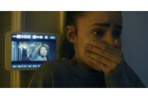 この度解禁するのは、そんな彼女が本作『ソングバード』で演じたサラを捉えた場面カット7枚。不安そうな面持ちで電話をかけるシーンや、防護服に身を包んだ者に捕まり必死に抵抗する瞬間を捉えたもの。