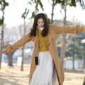 また今回、柔らかいパーマがかった髪の毛が印象的で、目を丸くしている表情や、楽しげに公園を歩く天真爛漫な性格が伝わってくる場面写真も公開。さらに、落ち葉に囲まれた公園で、目の見えない真治の頭の上に落ちた葉に響が手を伸ばす2ショットも到着。