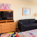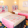 ピンクをはじめとしたパステルトーンの色合いにつつまれた室内は、ミニーが夢に描いたファンタジーな世界があふれ、パークの余韻をそのままにポップでキュートな世界を楽しむことができる。そして、ベッドや壁掛けアート、コーヒーテーブルなどにはミニーが夢に描いた世界を満喫している様子や、大好きなものに囲まれリラックスしているミニーが描かれていて、様々な表情のミニーに囲まれて特別な時間を過ごせそう。