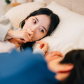 続いて百瀬さんに追加のミッションが。「妻と一緒に寝るときに叶えたいことを告白してください」と書かれたカードを読み上げた百瀬さんは「ハグ!」と即答。そして2人は寝室へ。「眠たい」「お酒も飲んだし」と呟きながらベッドの中へ入り、百瀬さんは唐突に正面からハグ。あまりの力強さに堀さんも「苦しい…」と呟きつつも嬉しそう。夢の中へ…と思いきや、百瀬さんから「またね」と迷言が飛び出し、堀さんは思わず爆笑。微笑ましいやりとりを見せた。