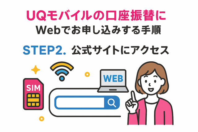 WebでUQモバイルの口座振替にお申し込みする手順は以下になります。
