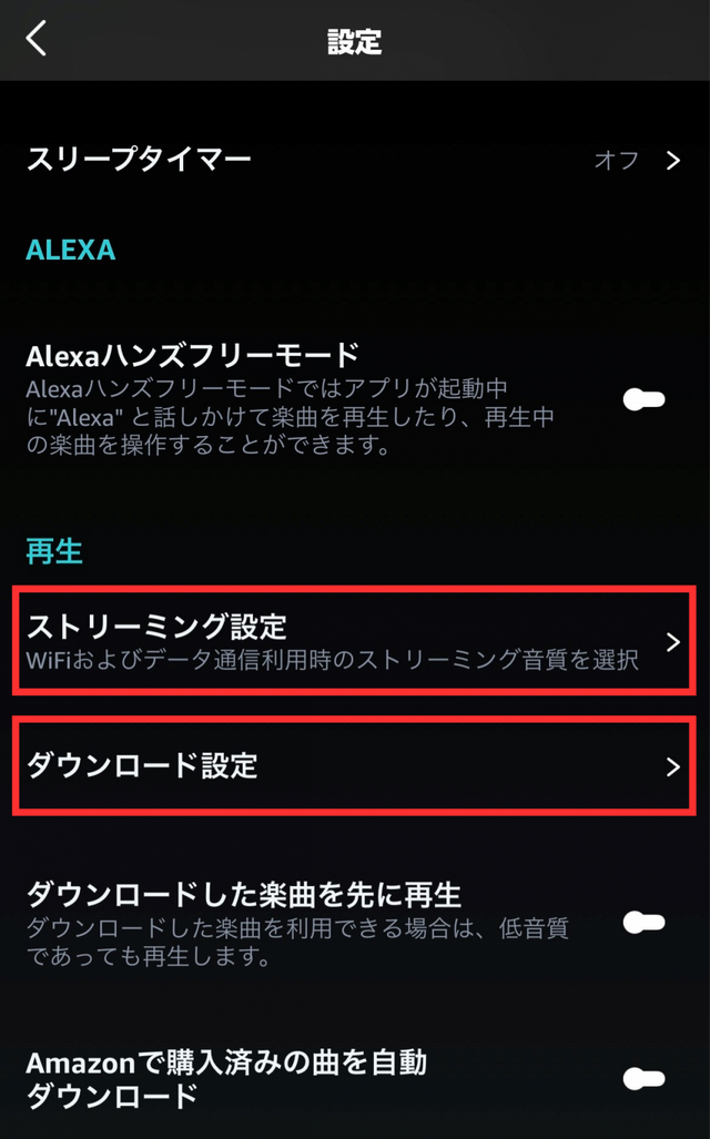 ただ、どちらの設定もAmazon Music FreeとAmazon Prime Musicの方は、「標準」がアプリの中で最高の音質設定になります。