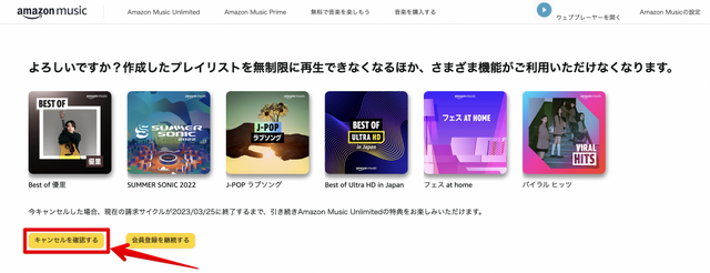 以上でAmazon Music Unlimitedの解約は完了です。