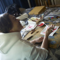 堂本は絵画指導の百田智行に適宜アドバイスを仰ぎながら、乾いた刷毛をキャンバスの上で滑らせつつ筆入れの手際や所作を確認。長く絵を描いてきた沢田の“アクション”を身体に染みこませていった。