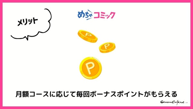 めちゃコミは月額制のため、毎月登録コースに応じたポイントが自動加算されます。