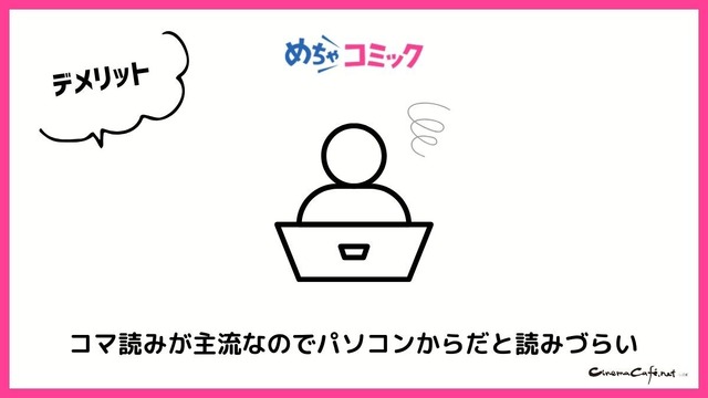 1コマずつスクロール(もしくはタップ)して読んでいくスタイルのためスマホでは使いやすいですが、パソコンの場合読みづらいという悪い評判が目立ちました。