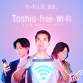 ポスタービジュアルでは、トシオの胸に青く光るWi-Fiマークが大きく表示され、その横にはトシオのfree Wi-Fiを使用して携帯をいじっている息子と妻の姿も写し出されている。