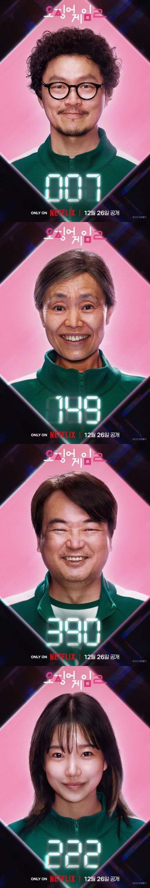 ゲームを終わらせるために戻ってきた456番のギフンのポスターは笑いのない真剣な表情で、初めて参加する他の参加者たちと対照される。純粋で明るかったシーズン1の時とは異なる雰囲気を漂わせるギフンの姿は、ゲームの背後を明らかにするために命をかけてゲームに再び参加した彼の執念と強い意志を垣間見ることができる。