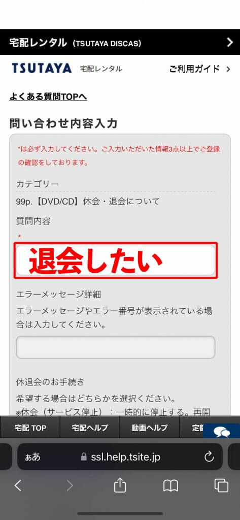 どうしてもこの時間帯に解約したい人は、ツタヤディスカスカスタマーサービスに電話しましょう。