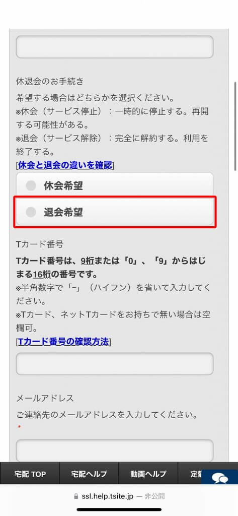 ツタヤディスカスにはサービス停止と解除があり、解約は「解除」を選ぶ