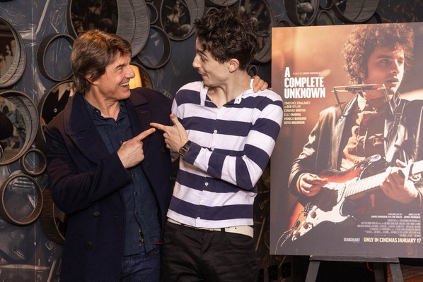 ティモシー・シャラメが若き日のボブ・ディランを熱演し、第82回ゴールデン・グローブ賞にて作品賞・主演男優賞賞(ドラマ部門)ほか計3部門にノミネートされた『名もなき者/A COMPLETE UNKNOWN』。ロンドンで開催されたプレミア上映にトム・クルーズが来場した。