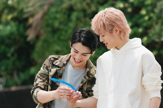 併せて、鞍馬×真田の仲の良さが垣間見えるカットや、「KNOCK OUT」に襲撃され、シリアスな雰囲気のカットが解禁。さらに、カットがかかった後も楽しそうなもぐもぐオフショットも公開された。