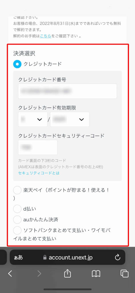 U-NEXTの公式HPから登録した方は決済方法の変更も可能ですが、以下の2つは後から変更することができないので注意が必要です。