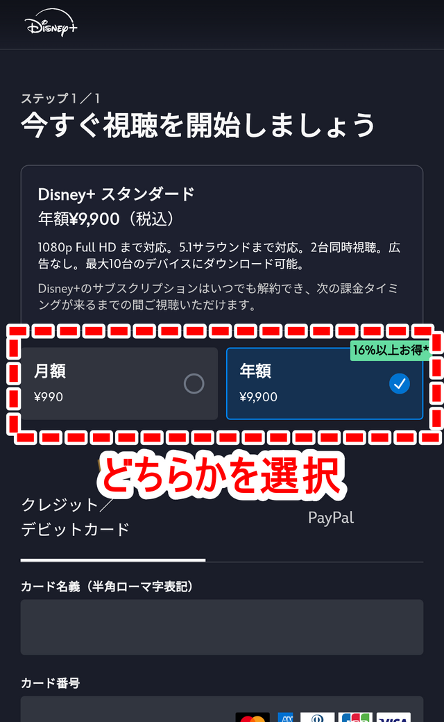実質2ヶ月分が無料の年間プランを希望する場合は、ディズニープラス公式サイトから登録を行いましょう。