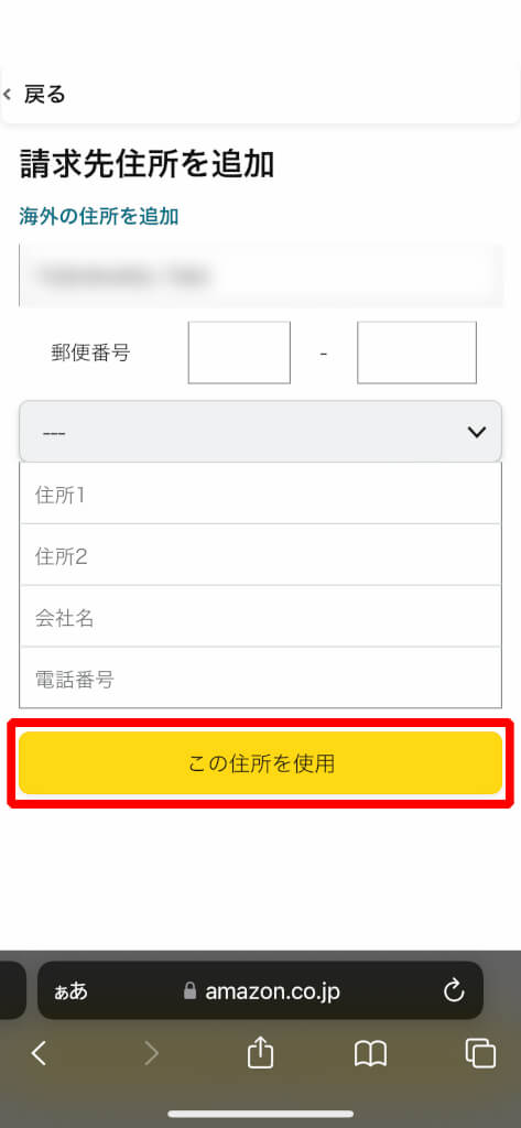 入力が終わったら「この住所を使用」と書かれているボタンをタップします。