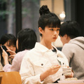 今回、河合が演じているヒロイン・桜田は、お団子頭が印象的な孤独を恐れぬ凛とした人物。解禁された場面写真でも、凛とした印象がありつつ、恋愛映画ヒロインならではのキュートな笑顔を見せている。