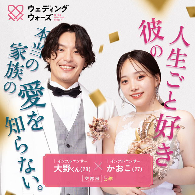 4月29日(火・祝)よりABEMA SPECIALチャンネルにて放送される婚前合宿サバイバル「ウェディングウォーズ」から、参加する8組のカップルが発表された。