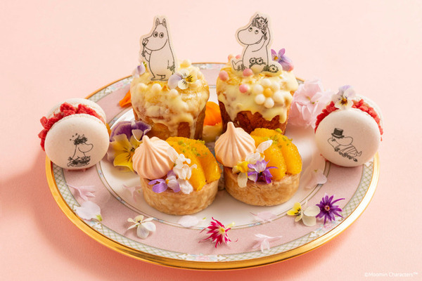 昼に開催される「フローラルバレー アフタヌーンティー」では、ムーミン谷の仲間たちにちなんだ鮮やかなスイーツやセイボリーが3段のティースタンドに勢揃いする。