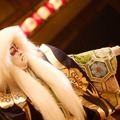 「連獅子」より、迫力ある親獅子の精の半二郎(渡辺謙)。「鷺娘」より、ふりしきる雪の中で、恋の悲しみにもがく鷺の精を演じた万菊(田中泯)が登場。