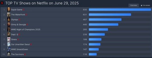 6月30日(韓国時間)、世界のOTTランキングを集計するサイト“FlixPatrol”によると、Netflixオリジナルシリーズ『イカゲーム』シーズン3は、6月29日(現地時間)付でNetflixのグローバルTV番組部門において1位に輝いた。