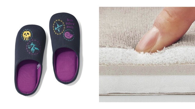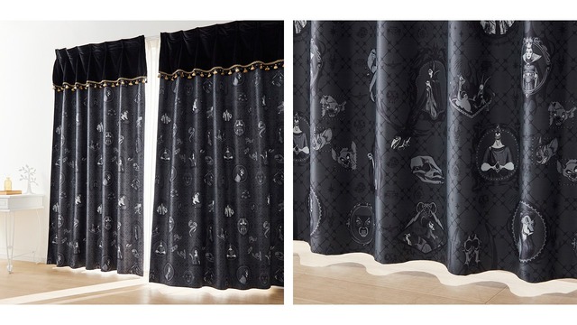 商品ラインアップには、複数の「ヴィランズ」や手下たちをあしらった遮光・遮熱カーテン、「ヴィランズ」に関係するモチーフが刺繍されているスリッパ、各キャラクターのロゴやアイコンなどの刺繍を施したボリュームファーコート、「ヴィランズ」の顔をデザインした総柄シャツ、9キャラクターの「ヴィランズ」の集合アートをデザインに取り入れたトートバッグなどが並ぶ。