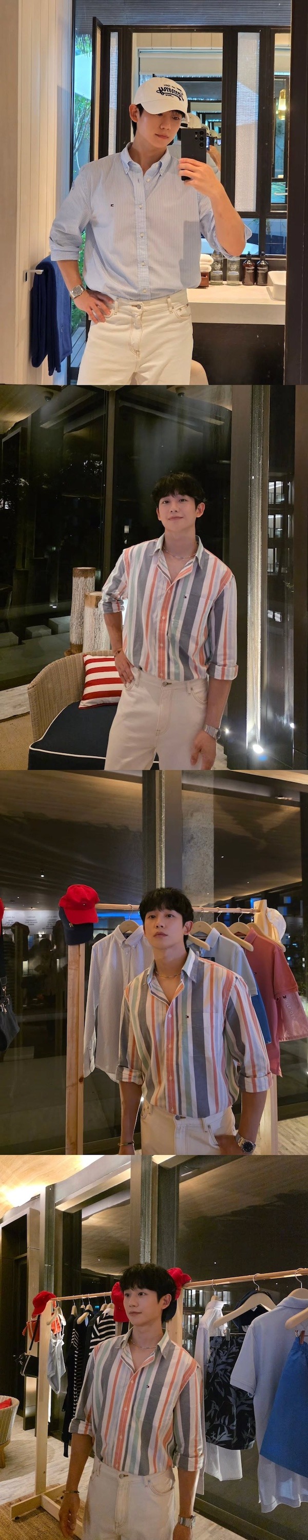 帽子を深くかぶった自撮り写真では、小さな顔立ちと変わらぬ端正なルックスを際立たせたチョン・ヘイン。他のカットでも一段と若返りしたような、少年のような雰囲気がファンの目を釘付けにしている。