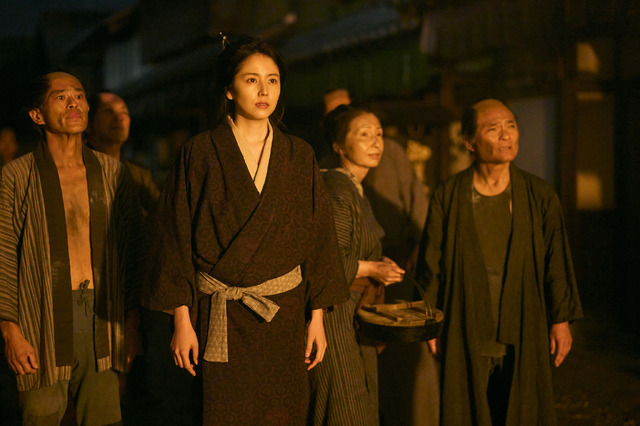 映像では、火事を「格好が良くて、綺麗でしょ」と見つめ、その体験から代表作「吉原格子先之図」が生まれる瞬間を捉えている。夫と離縁して北斎の元に戻るが、北斎の門弟で売れっ子絵師・初五郎/魚屋北渓(大谷亮平)への淡い恋心に揺れながら、生き方を模索する姿も。