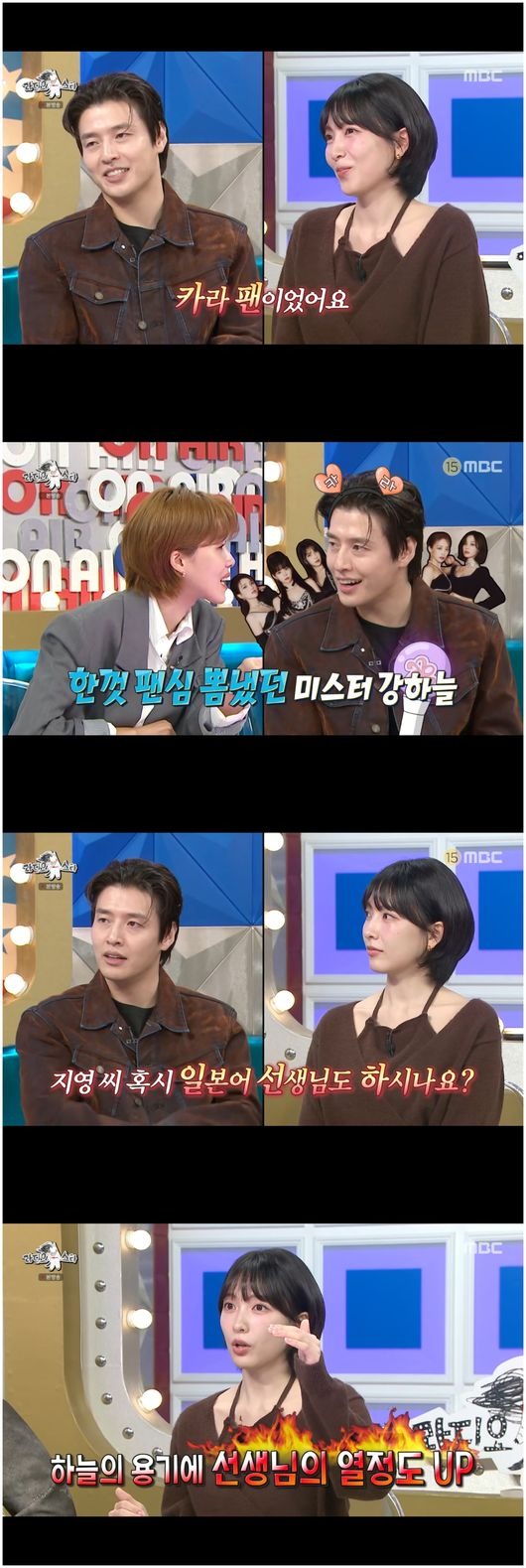MCのチャン・ドヨンが「今は仲良くなりました?」と聞くと、カン・ジヨンは「今、私が日本語の先生をしている」と明かしてスタジオを驚かせた。