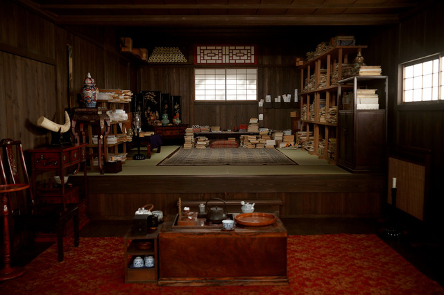 さらに印象的なのが、菊之助(長尾謙杜)や総一郎(柄本佑)も訪れた篠田金治(渡辺謙)の仕事部屋。単なる執務室ではなく、森田座の中枢とも言える空間について、「あれは単に篠田金治の仕事部屋というだけではなく、彼が主催するサロンのようなもので、役者や音曲方、職人や贔屓筋も出入りする場として考えた。森田座という芝居小屋において、金治の声望や権威の大きさが、あの仕事部屋を見るだけで理解できる」と明かす。