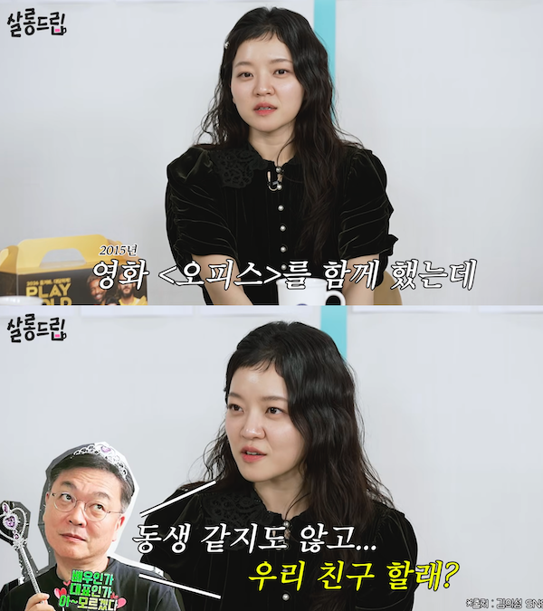 MCのチャン・ドヨンから「アソンさんは年齢が離れている有名な親友がいらっしゃいますよね」と振られたコ・アソン。