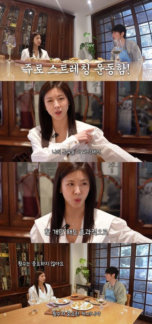 深く共感したハ・ジウォンは「その通りだ。回数が重要なのではない。ただ腕を細くするためにむやみにストレッチをするのではなく、正確なポイントに力をパッと入れて、『そこが伸びている』と筋肉にシグナルを送る。まるで瞑想のように、自分の体と対話しなければならない」と強調した。