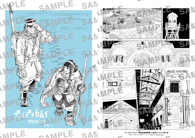 全国合計40万名限定で、A5サイズの両面仕様となっている。1面には野田サトル書き下ろしによる、スモーキーブルーの背景に旅を続ける杉元とアシリパの姿が描かれている。もう1面には、今作の舞台となる決戦の地・網走監獄の原作絵を野田自らレイアウトしたアートボードが登場する。