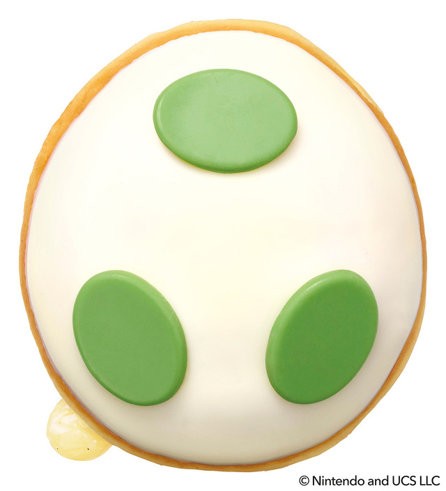 「ヨッシー カスタード エッグ」は、ヨッシーのタマゴをイメージしたドーナツ。ホワイトチョコでコーティングしたドーナツの上に、ヨッシーのタマゴのもようをイメージした楕円の緑色のプレートチョコがのせられている。ドーナツの中には北海道産ミルク入りのカスタードクリームが入っている。見た目も本物にそっくりな、遊び心のある商品。