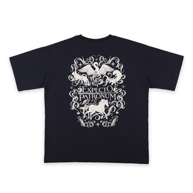 映画『ハリー・ポッター』シリーズの作中で、守護霊「パトローナス」を呼び出す強力な魔法「エクスペクト・パトローナム」のアートをデザインしたTシャツ。