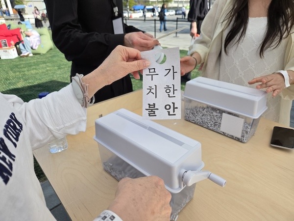 そしてこのイベントで筆者が特に印象に残ったのは、さまざまな煩悩が書かれた短冊から手放したい感情を一つ選び、自らシュレッダーにかける体験コーナーだ。シンプルな仕掛けながら、不思議と気持ちが軽くなる感覚があり、強く記憶に残った。ちなみに筆者が選んだのは「不安」である。