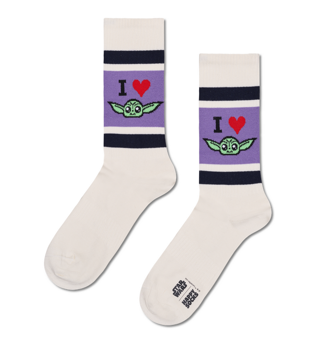 アクティブなシーンにぴったりのスポーツソックス。グローグーへの愛をストレートに伝える「アイハートグローグー」は、サイドのハートマークがアクセントになるキュートな一足。元ジェダイ、アソーカ・タノにインスパイアされた「アソーカ」は、彼女を象徴するカラーリングでスタイリッシュに表現。さらにバウンティハンター、ディン・ジャリンを描いた「マンドー」は、クールなシルバーのヘルメットが足元のポイント。