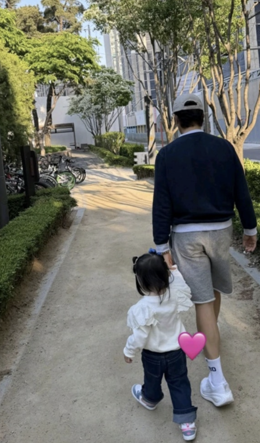 イ・ミンジョンは4月26日、自身のインスタグラムに1枚の写真を掲載した。公開された写真には、のどかな散歩道を歩くイ・ビョンホンと娘の後ろ姿が収められている。