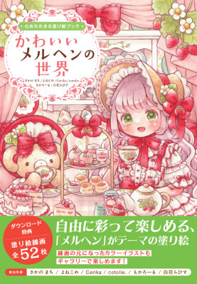 ほんわかとした動物たちや小物、かわいい洋服に身を包んだ女の子、見ているだけで心がほっとするような、ぬくもりあふれる空間を描いた線画を約50点収録しています。
