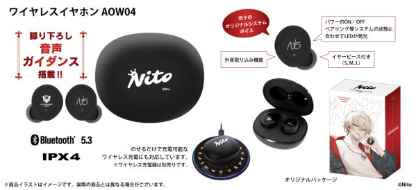 本モデルは、弐十の録り下ろし音声ガイダンス(全11ワード)を搭載。充電ケースの天面には弐十のロゴを、イヤホン本体には衣装タグのモチーフとイヤホンのために書き下ろしたサインをあしらい、パッケージには本モデルのために描き下ろされたイラストを採用しております。