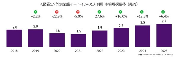 2025年 外食「おひとりさま」市場規模は過去最高の2.7兆円
