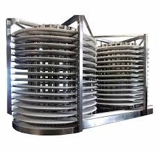 スパイラル急速冷凍庫は、食品や農産物、海産物などの大量生産品を短時間で均一に凍結させるための業務用冷凍装置です。名前の通り、内部に設置された螺旋状コンベアを用いて製品を連続的に移動させながら、強力な低温風や冷媒で急速に冷却します。これにより、氷晶の形成を最小限に抑え、食品の細胞構造や風味、栄養素を損なわずに保存することが可能です。また、省スペース設計で大量処理が可能なため、工場ラインや食品加工現場で広く採用されています。スパイラル急速冷凍庫は、凍結効率の向上や品質保持の点で従来の静置式冷凍庫より優れており、冷凍食品産業の高品質化と生産効率化に貢献する装置です。