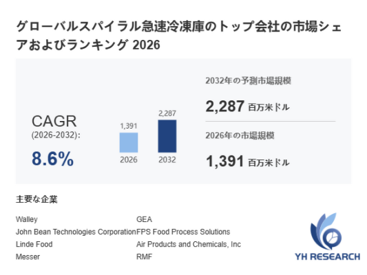 本記事は、YH Researchが発行したレポート「グローバルスパイラル急速冷凍庫のトップ会社の市場シェアおよびランキング 2026」 を紹介しています。