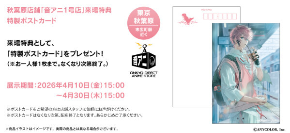 また、弊社秋葉原店舗「音アニ」では4月10日(金)15:00より「A4クリアファイル」および「ワイヤレス充電器」の販売と同時に実機展示を実施いたします。本モデルに搭載される録り下ろしボイスや音質を確認できるほか、店頭設置の専用QRコードからもご購入いただけます。ご来店特典として、オリジナルポストカードの配布をさせていただきます。ただし、こちらは数量に上限がございますので配布はお1人様1日1枚、無くなり次第終了となります。