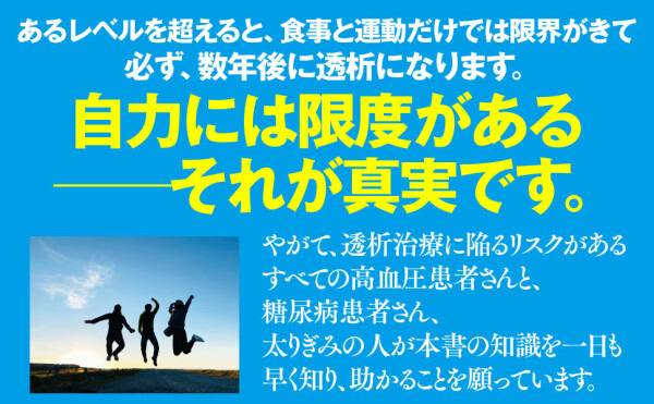 この知識を武器に、早めに、自ら動けば、透析から一生逃れることができます。