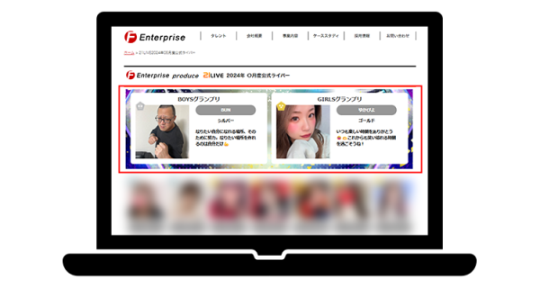 また、各ランキング1位の方には提携芸能プロダクション「F.Enterprise」公式サイトでのピックアップ掲載やバナー出演など、注目度アップにつながる特典もご用意しています。