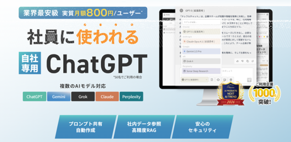 ナレフルチャットは、企業がクローズド環境でセキュアに利用できる対話型生成AIチャットツールです。生成AI初心者でも使いこなせる仕組みと簡単にプロンプト共有できることで組織全体に生成AI活用を浸透させます。これにより、企業全体のAIリテラシー向上と業務効率の向上を同時に実現します。すでに1000社以上の企業に導入されています。