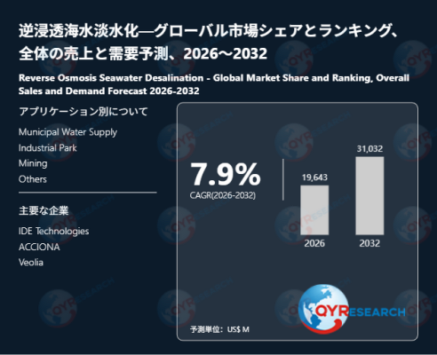 本記事は、QY Research発行のレポート「逆浸透海水淡水化―グローバル市場シェアとランキング、全体の売上と需要予測、2026~2032」に基づき、市場動向および競合分析の概要を解説します。