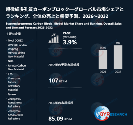 本記事は、QY Research発行のレポート「超微細多孔質カーボンブロック―グローバル市場シェアとランキング、全体の売上と需要予測、2026~2032」に基づき、市場動向および競合分析の概要を解説します。
