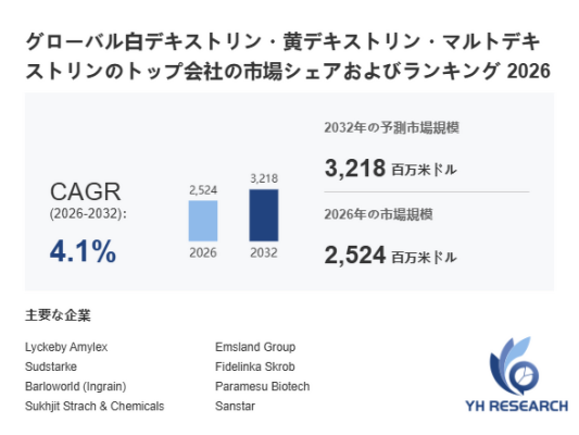 本記事は、YH Researchが発行したレポート「グローバル白デキストリン・黄デキストリン・マルトデキストリンのトップ会社の市場シェアおよびランキング 2026」 を紹介しています。