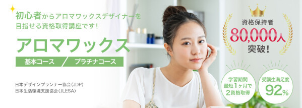 講座で学ぶ内容は日本デザインプランナー協会の「アロマワックスデザイナー」(https://www.designshikaku.net/handmade/aromawax/)、日本生活環境支援協会の「アロマワックスアドバイザー」(https://www.nihonsupport.org/syugeishikaku/aromawax/)それぞれの資格試験対策になっています。